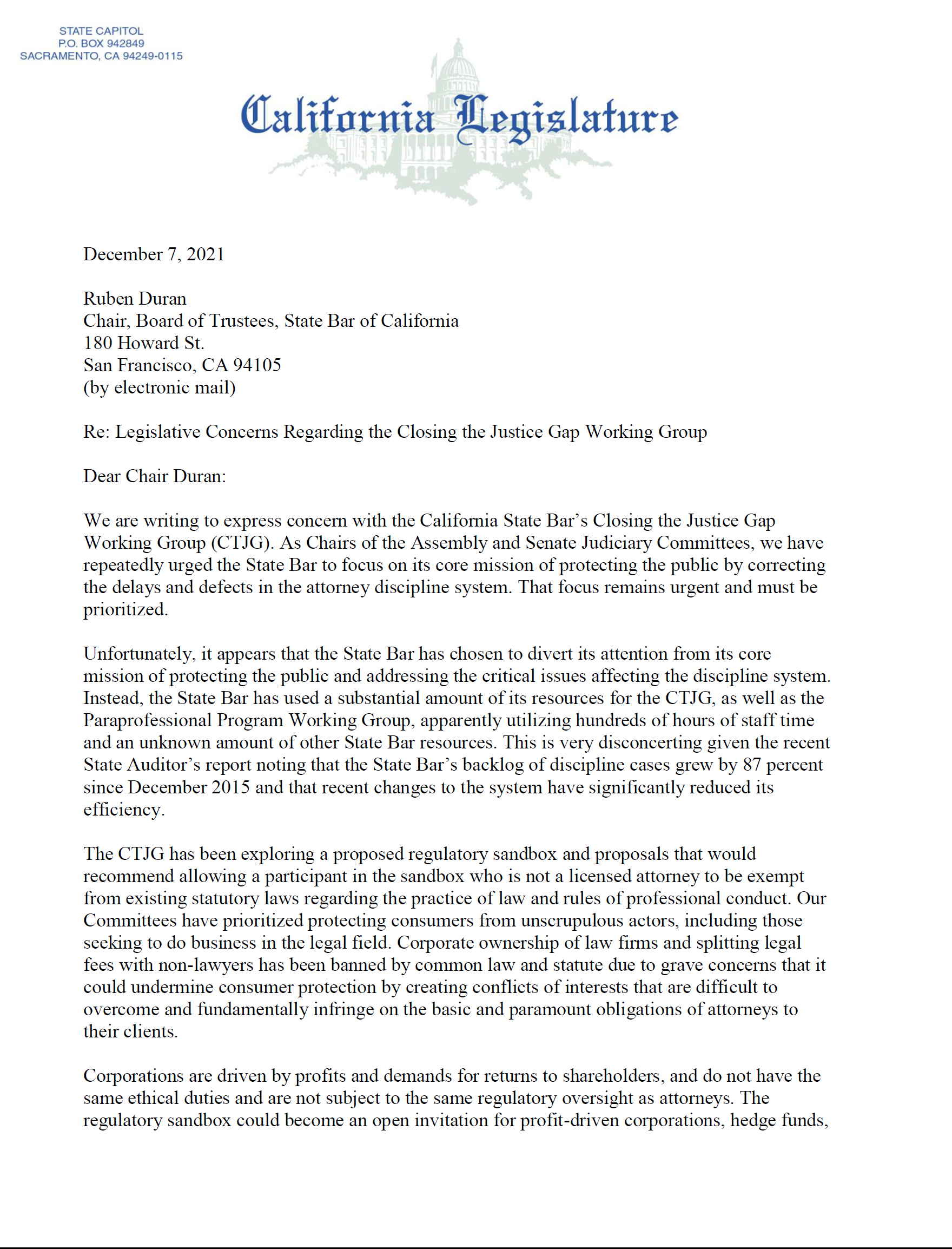 This has implications for recent complaints made against lawyers arising from activities connected with the 2020 Presidential election. Recently some complainants who had lodged complaints against such an attorney who had been the subject of extensive news coverage received a closing letter that told them their complaints were being closed because they did not claim to have “personal knowledge” of the conduct complained of or to represent any “party directly involved” with that conduct. This seems at odds with Rule 2403 which broadly defines complainant to exclude an explicit standing requirement and to include a “member of the judiciary or legal professions who alleged misconduct by the attorney which is or should be the subject of an investigation.” Is part of the reason these complaints were closed because an SBI exists, based on the same facts, opened in response to media coverage? If so, shouldn’t that be explained as a basis for closure? Shouldn’t the complainant and maybe the public at large know that the State Bar is looking into this conduct? Many people are looking to the discipline system to hold these lawyers accountable. The “secret investigation” of an SBI makes it possible that these concerns may never be addressed for reasons that we may never know.